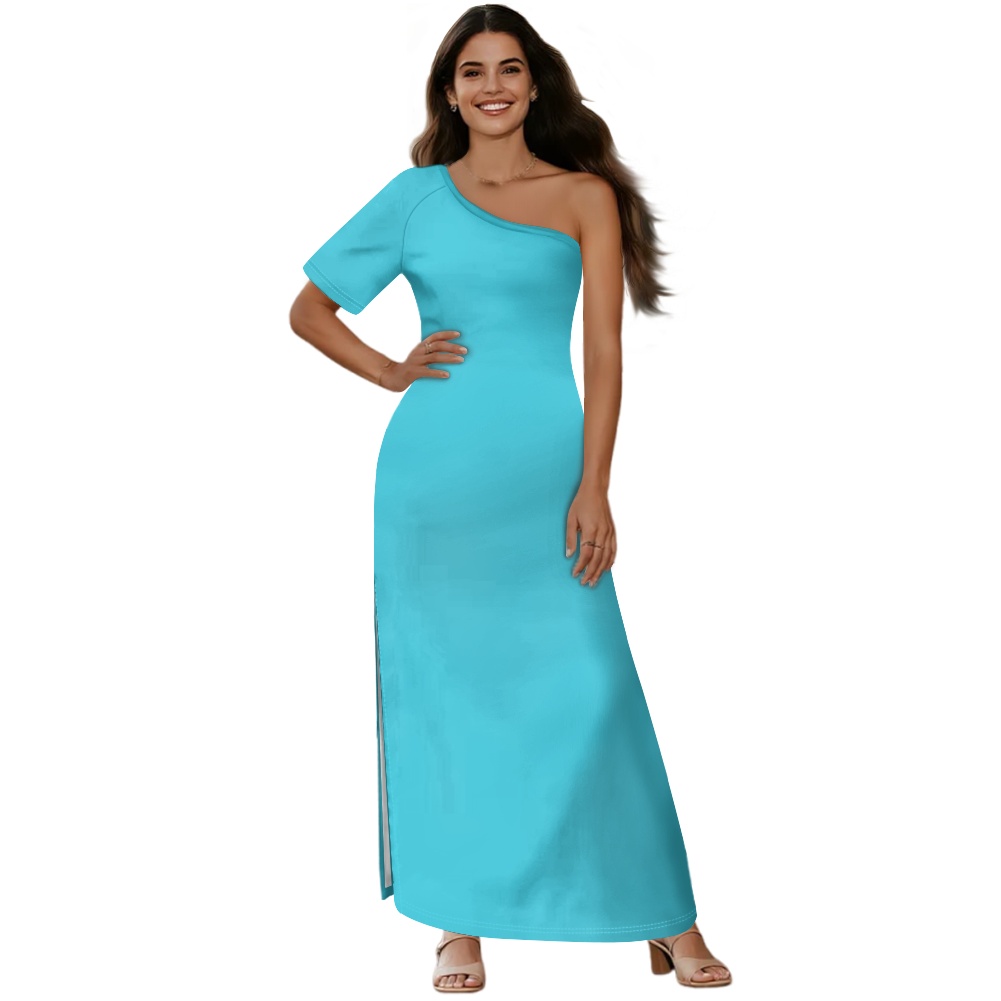 Single short sleeve off-shoulder slit skirt