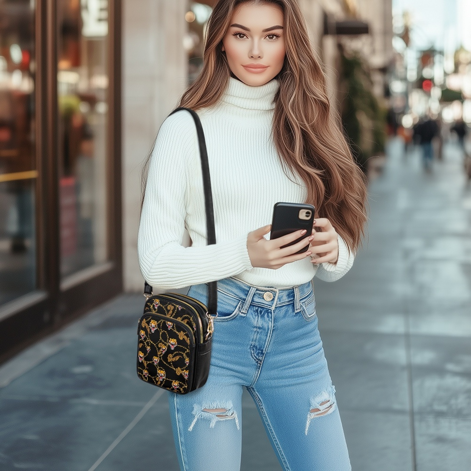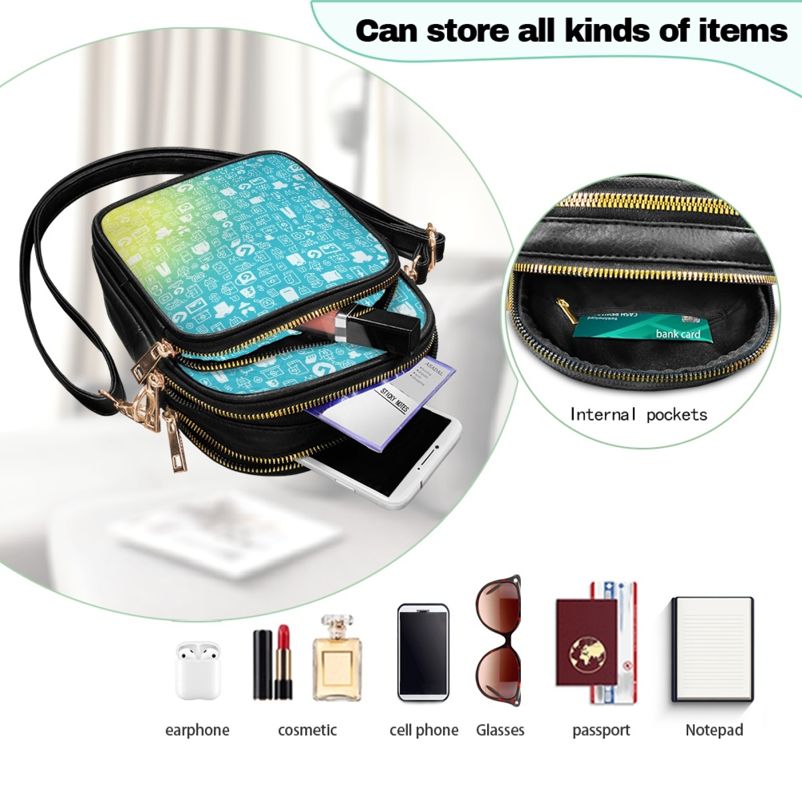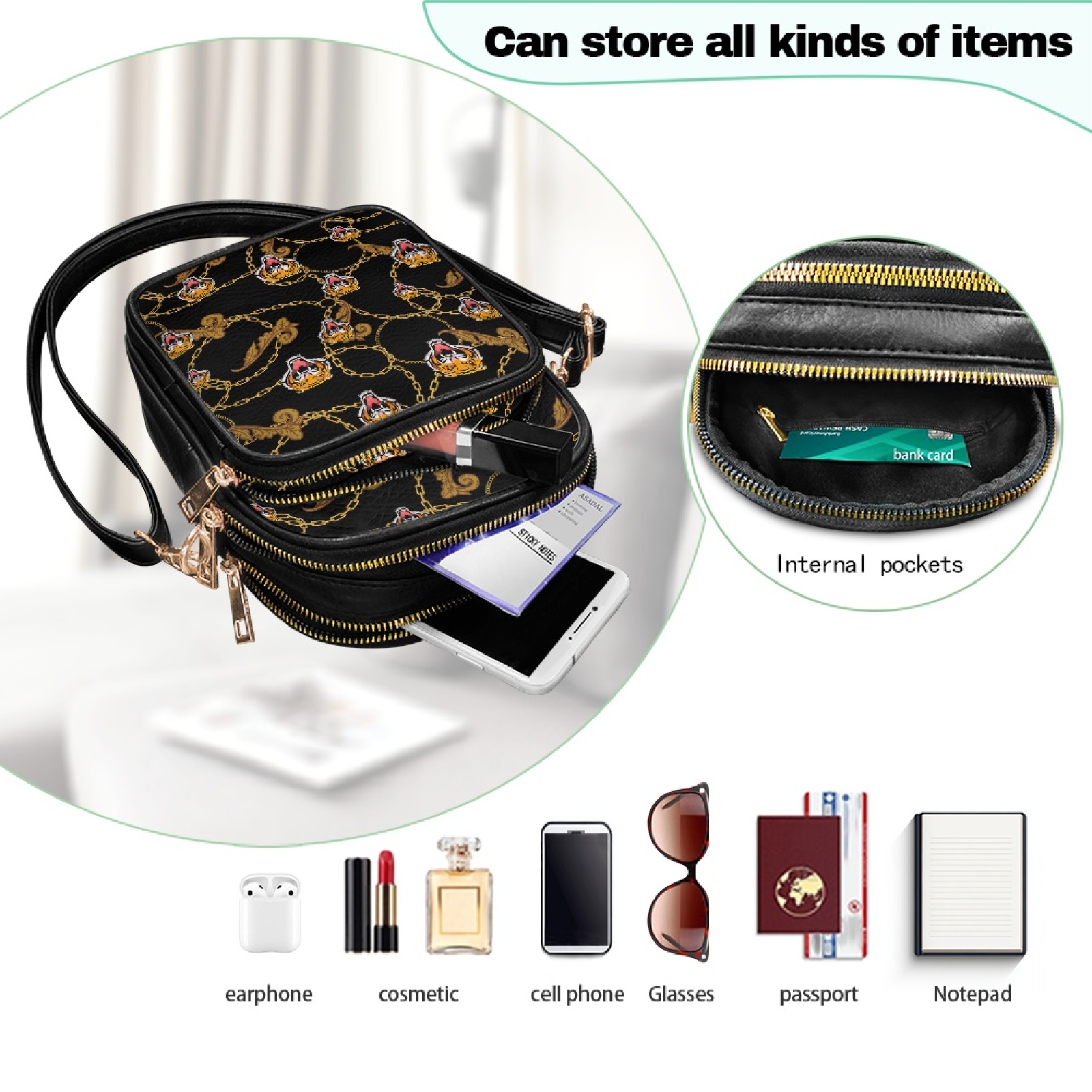 Women's Multi-Pocket Leather Crossbody Bag
