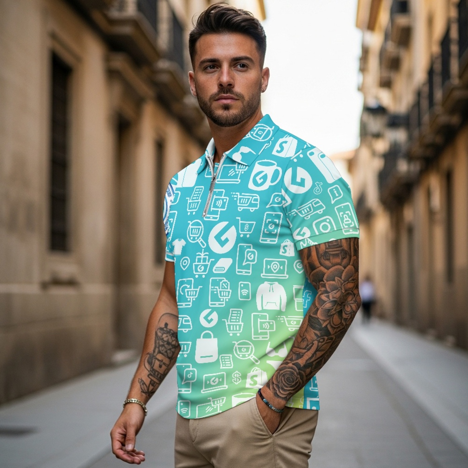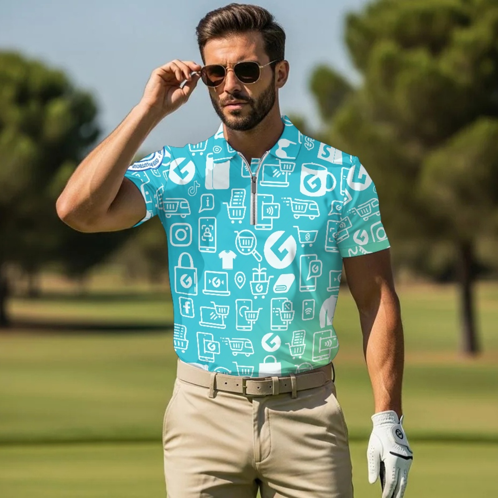 Short Sleeve Zip-Up Polo Shirt