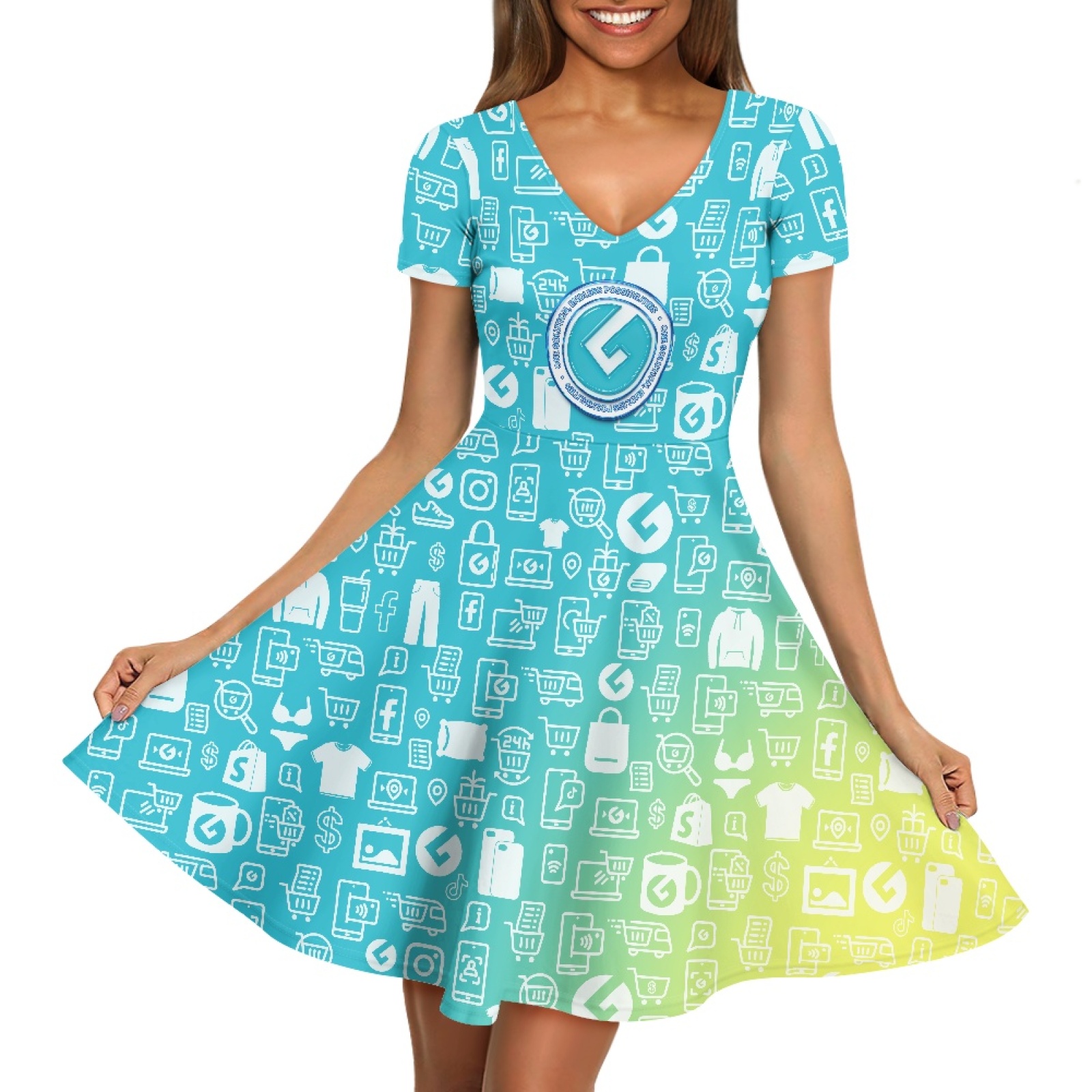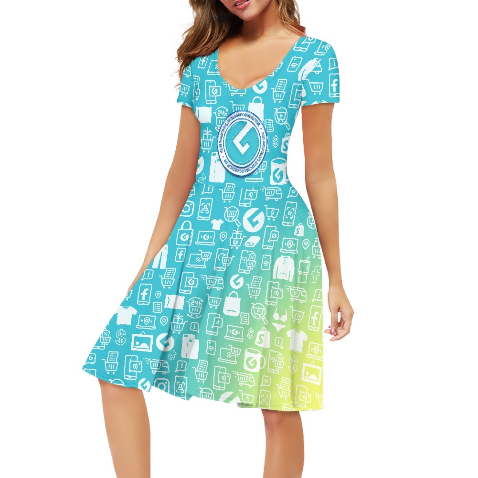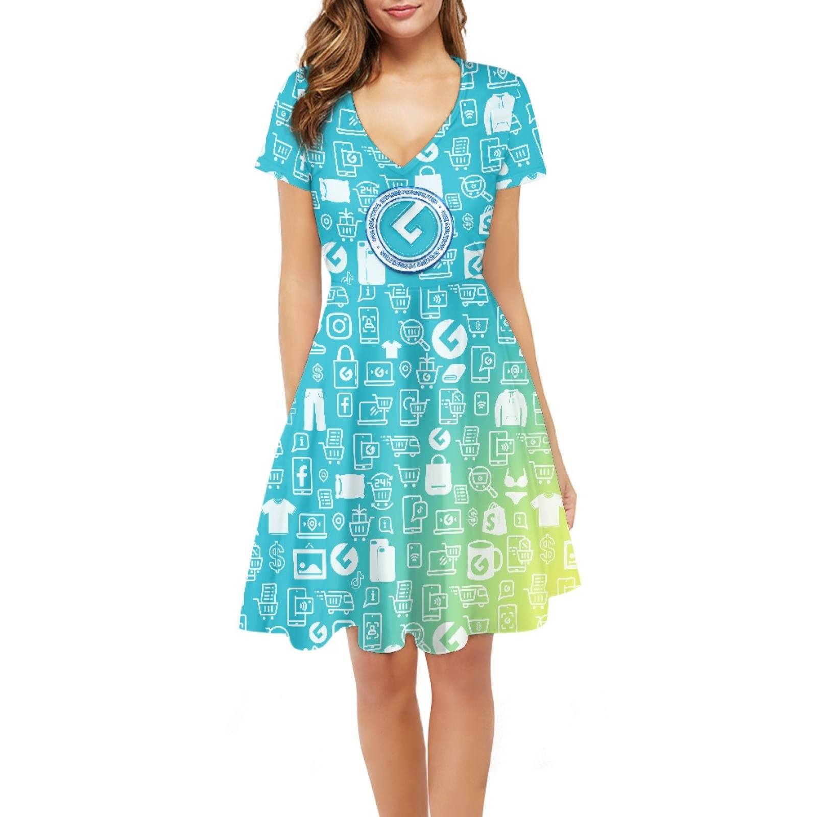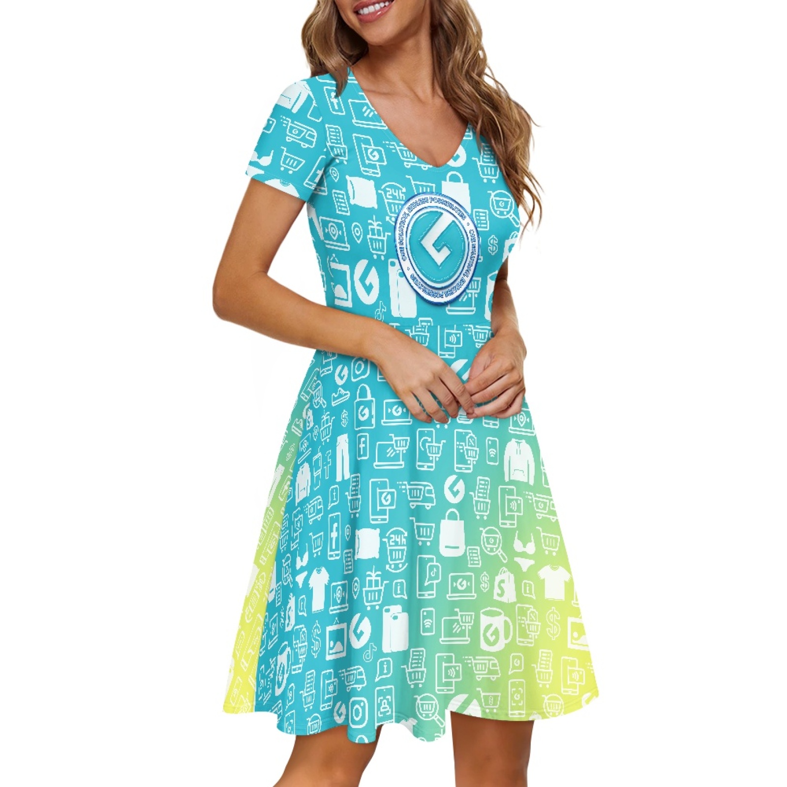 Ladies V-neck short-sleeved dress