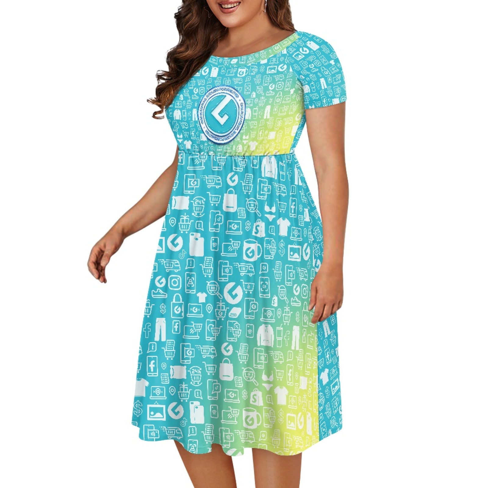 Casual Short Sleeve Printed Dress with Pockets