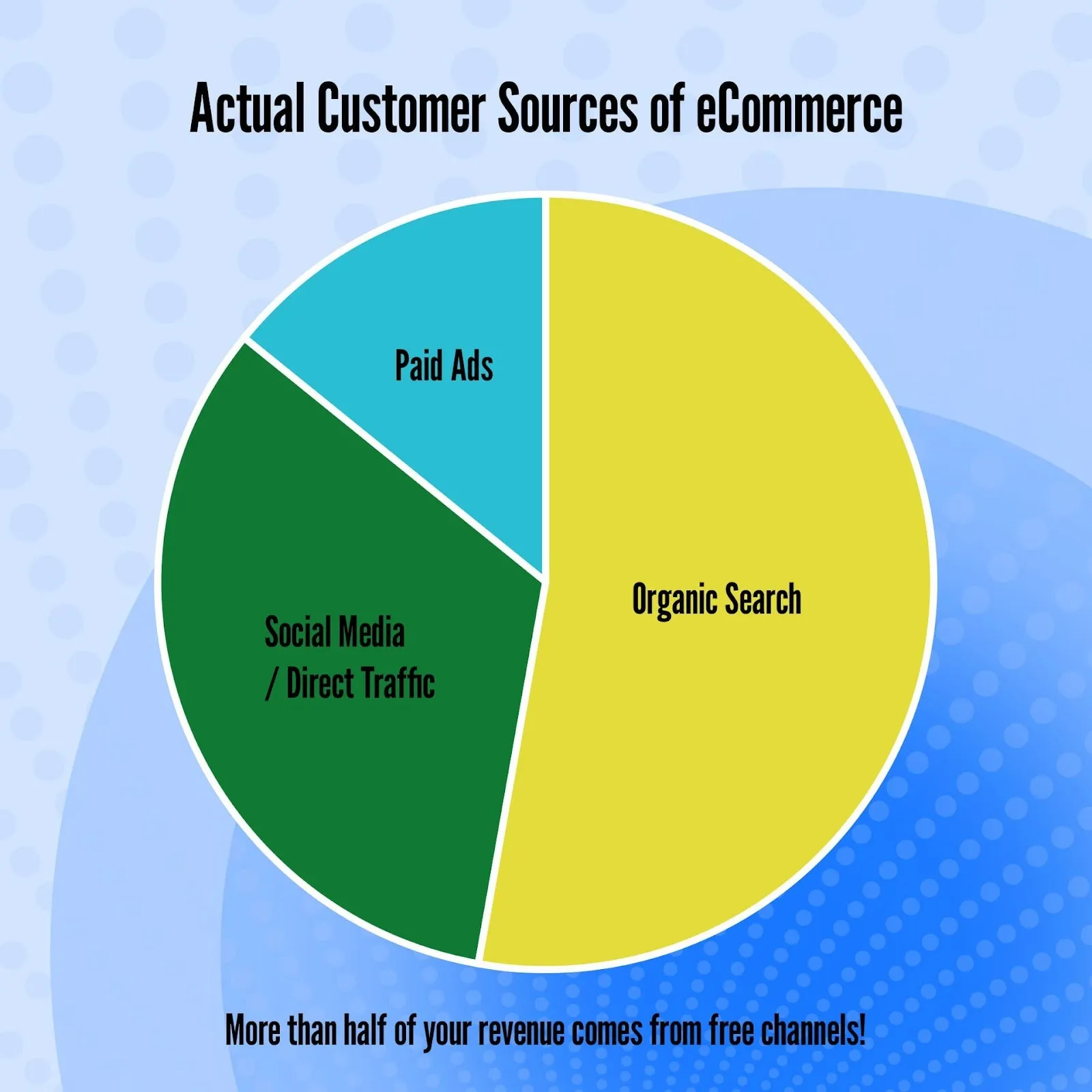 Even better? 69% of total eCommerce traffic comes from an organic source (Google) (DemandSage, 2025). That means the majority of people buying online are discovering products without ever clicking on an ad.